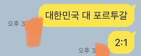 지금까지 축구 예상 좀 맞음 예를 들어 2:1 대한민국 포르투갈 전 예상 맞춤 ㅎ 브라질 3:2로 이기고 음 한일전에서 아슬아슬하게 이기고나 질거같음… 나중에 성지 됐음 좋겟다 ㅎㅎ