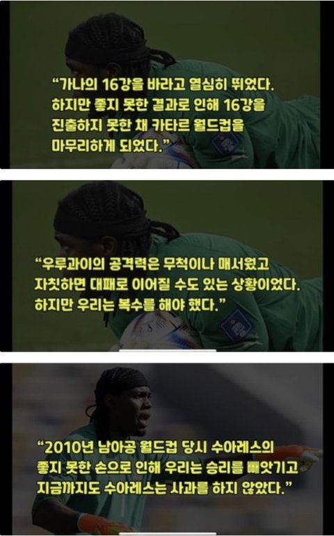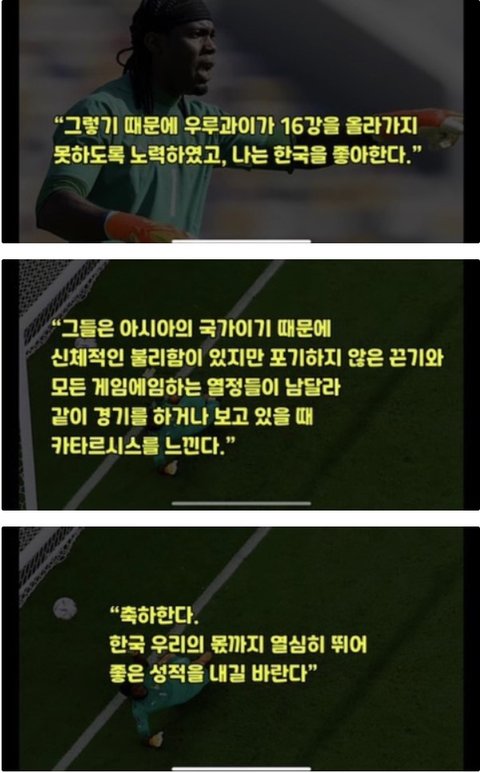 가나 축구팬들 사이에서 우루과이랑 대결은 거의 우리나라에서 한일전보다 승부욕 넘침 가나에서 수아레즈는 날강두 노쇼사건때보다 더 욕먹었고 이번에 가나 대통령이 공식적으로 복수한다고 말했을정도임ㅋㅋㅋㅋ 아무튼 이번 월드컵 너무 재밌고 아프리카 축구는 가나 인정 16강 화이팅 ㅠㅠ
