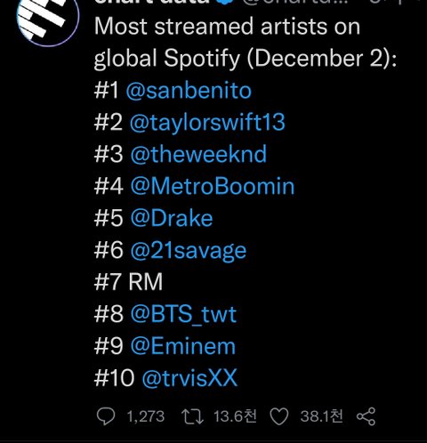 그 결과 스포티파이 아티스트 탑 텐에 들어갔는데