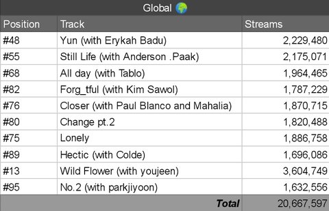 스포티파이 필터링 후 총 스트리밍수는