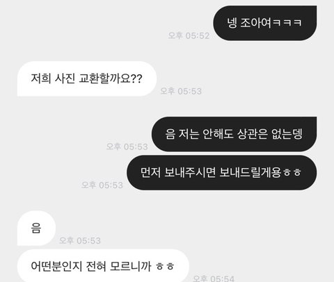 그분들이 캡쳐하고 그사람인지 확인하기 위해 쪽지를 주고받았던 내용들과 (사진받은부분은 잘랐습니다)