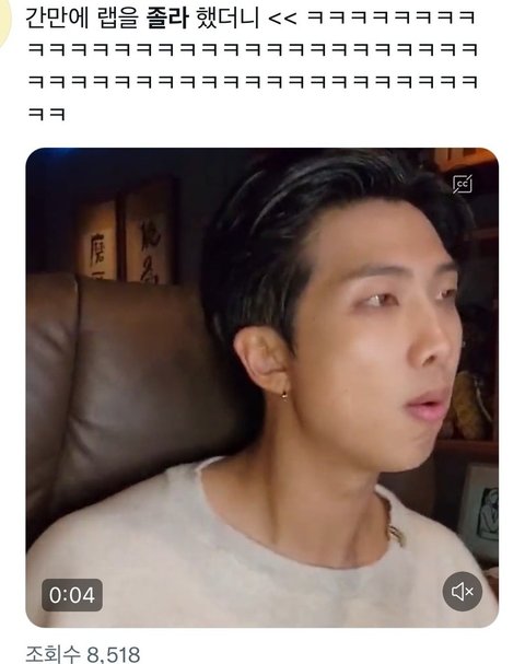 방탄 김남준ㅋㅋㅋㅋㅋ랩을 졸라했대ㅋㅋㅋ