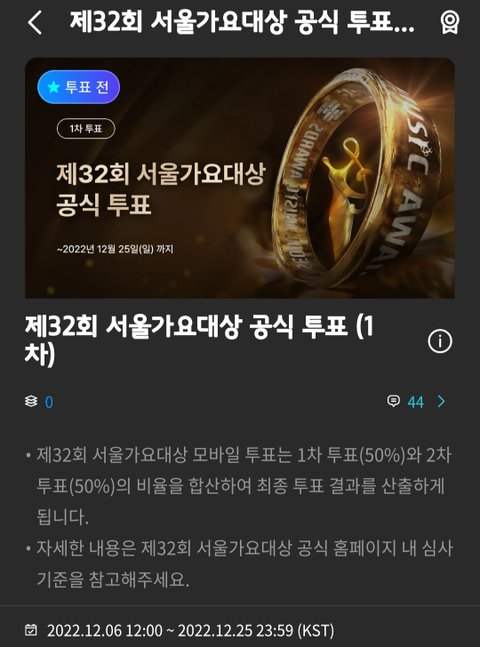 * 서울가요대상 공식투표 클릭하여 투표 진행