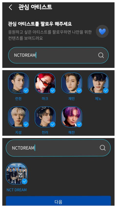 -> NCTDREAM 체크 확인 후 다음버튼 클릭