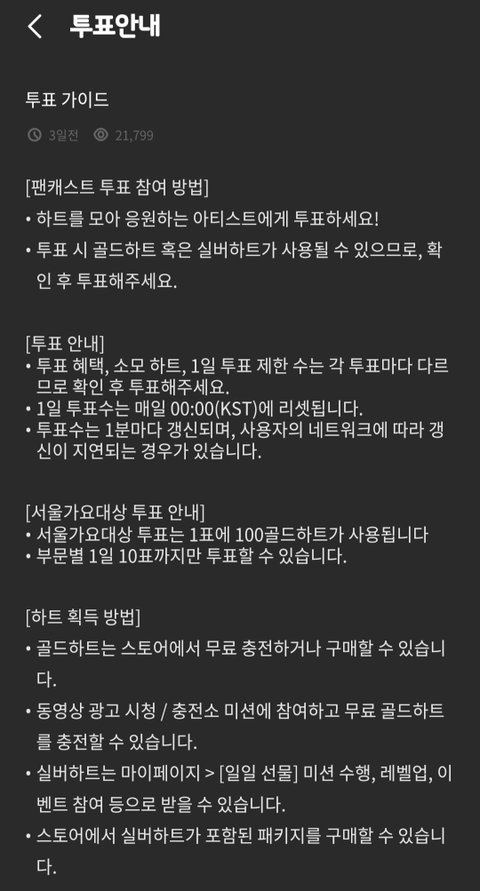 ❤️ 1회 투표 = 100골드하트