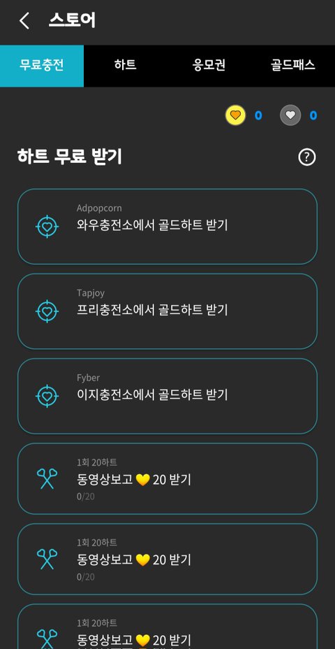 * 하트 무료충전 가능