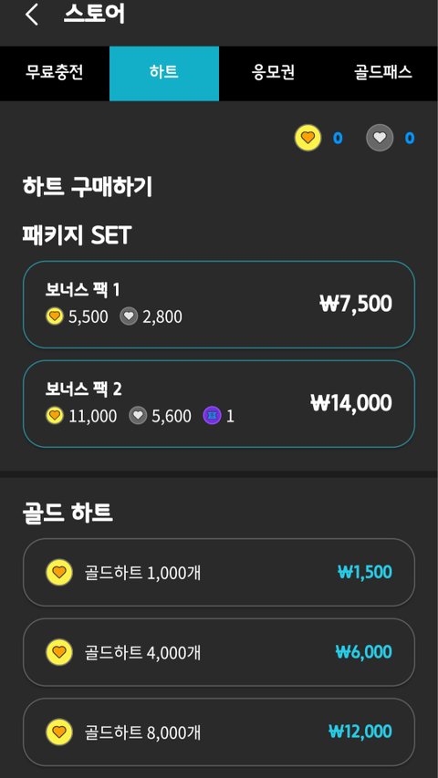 * 하트 유료충전 가능
