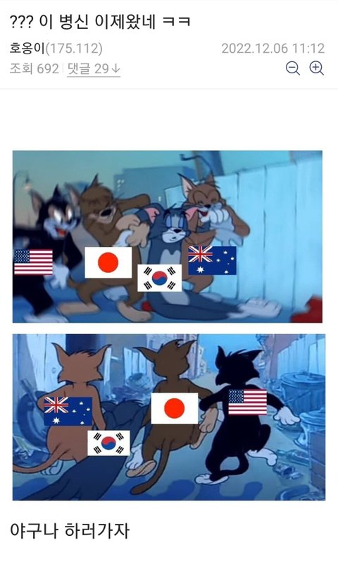 정작 일본은 크로아티아한테 지고 한국은 브라질한테 져서 사이좋게 광탈한 게 개웃김ㅋㅋㅋ