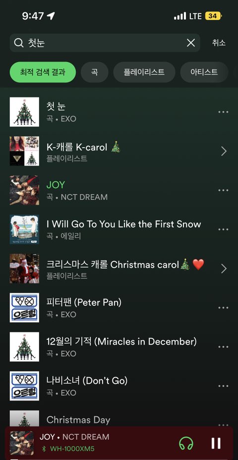 첫눈만 들으려고 햇는데.. 알아서 조이 추천해줌..