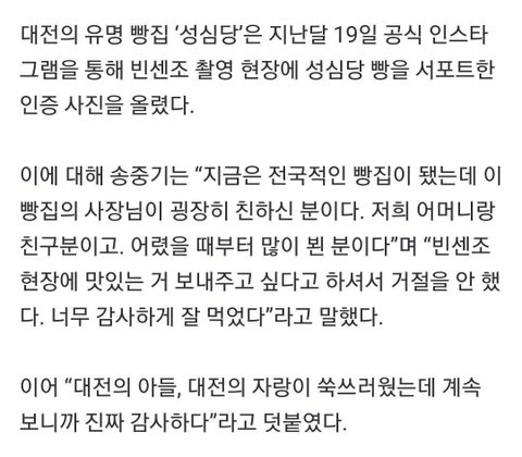 송중기가 드라마 빈센조 촬영 당시 빵을 서포트했는데....