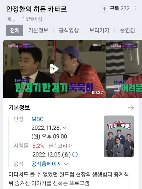 경기 때는 대표팀 히든캠 찍어서 방송하는 프로그램
