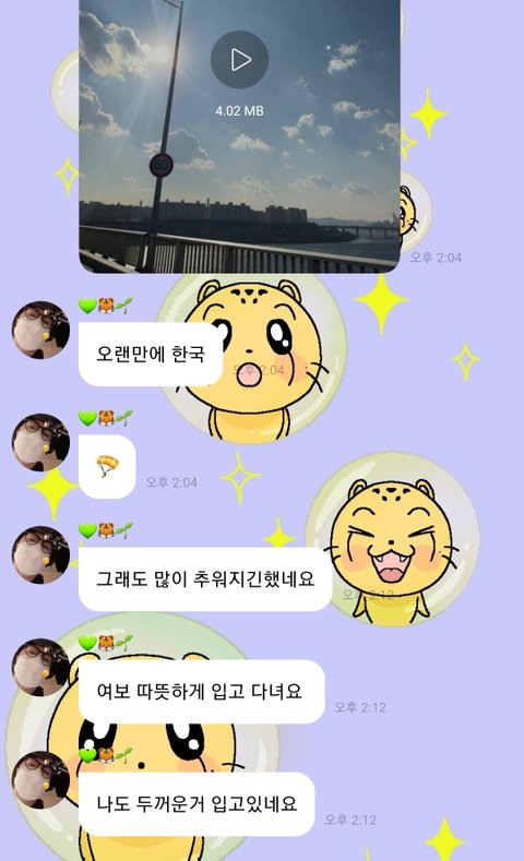 개스윗해... 따뜻하게 입고 다니라는 것도 스윗한데 하늘 찍어서 보내주는게ㅠㅠㅠㅠ 이쁜 하늘만 보면 맨날 찍어서 보내주는 거 뭐냐고 이 스윗애옹아ㅠㅠㅠㅠㅠ