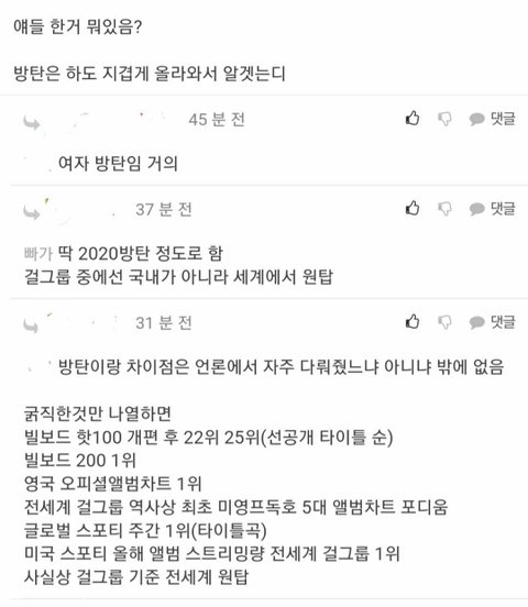 블핑이 방탄급이고 2020년 방탄이랑 지금 블핑이랑 같대 ㅋ