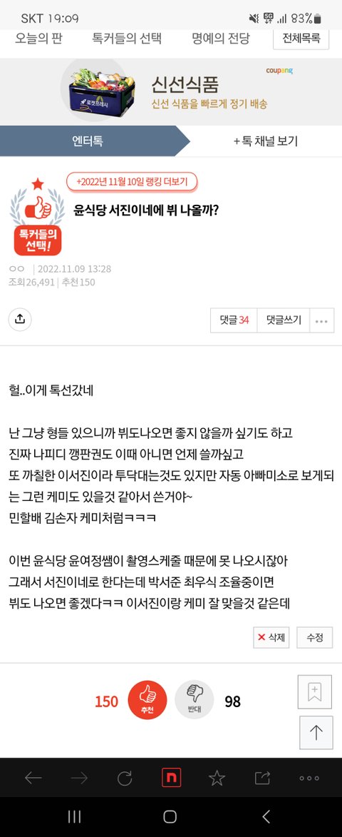 그런데 이런 흔한 뻘글을 굳이 클릭해서 조회수 늘리고 반대 누르고 댓글 달면서 톡선 보내고 북치고 장구치는 거 보니까 판녀들 또 여돌로..