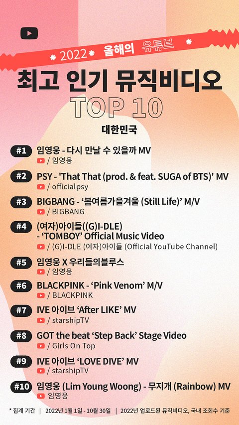 모그룹이 1위 찍었다고 한 유튜브 뮤직 탑10