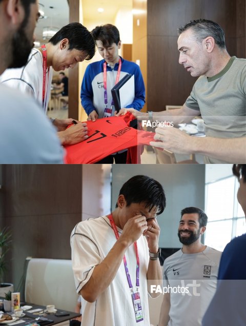 먼저 벤투호랑 작별인사하면서 유니폼에 싸인하는데