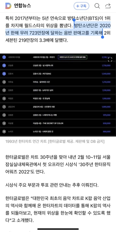 와 방탄 앨범 723만장 팔았대