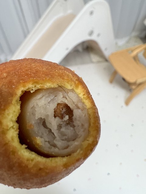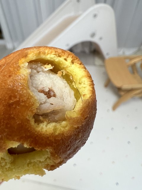 보니깐.. 이상한 털 하나가 빵에 박혀있네요..