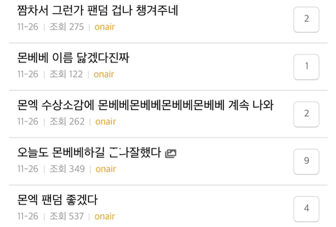 다 몬베베뿐이라서 타팬덤 사이에서 몬베베 부럽다는 반응 나옴