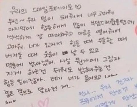 허윤진이 르세라핌 막내즈에게 쓴 롤링페이퍼
