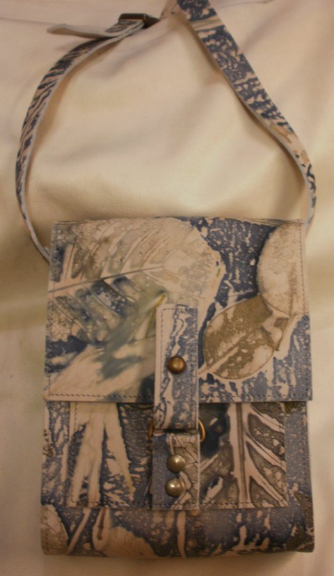 베지터블 가죽에 나뭇잎 등 자연 재료와 친환경적인 천연 염료를 사용하여 제작한 가죽 빈티지 숄더백입니다.(마디샤)