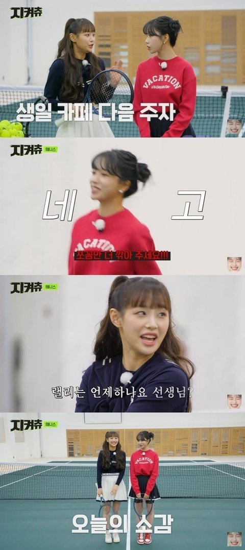 츄와 조유리는 테니스를 배우기로 했다. 츄는 곧잘 했지만, 조유리는 "운동치다"라고 말한 이유가 느껴지는 실력이었다. 츄는 "내가 다 받아주겠다"라며 언니 면모를 보였다.