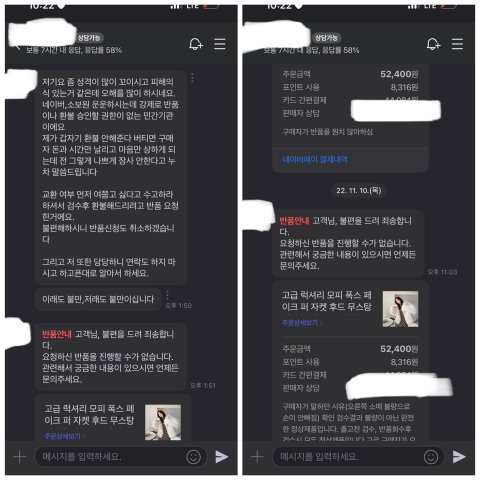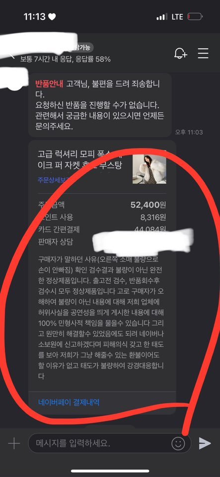 네이버스토어 아임베**에서 퍼자켓 구입 후하자 상품을 받아 반품 요청 후 반품 거절 및 인격모독을 당해저 같은 피해자가 안 생기길 바라며 공공의 이익을 목적으로사실만 적시하여 작성된 글임을 알려드립니다.