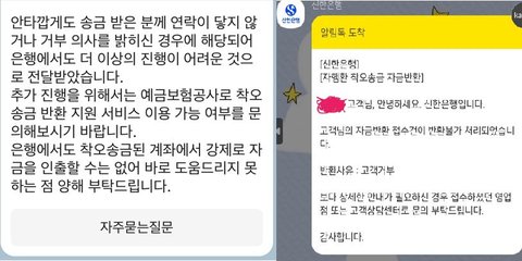 '보이스피싱'의 경우, 국가 기관 등을 사칭하여 돈을 뜯어내는 수법이라 관련 법안이 잘 마련되어 있어서 피해를 당하면 신고를 하고 바로 상대방의 계좌를 정지 시킬수가 있어요.