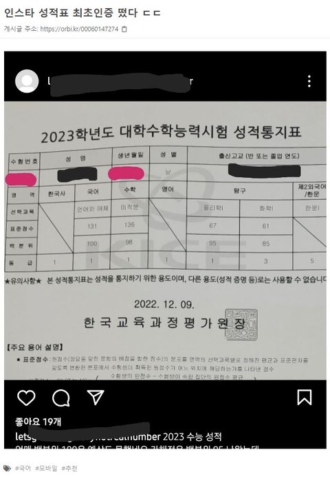 수능 성적표 유출된거봄??