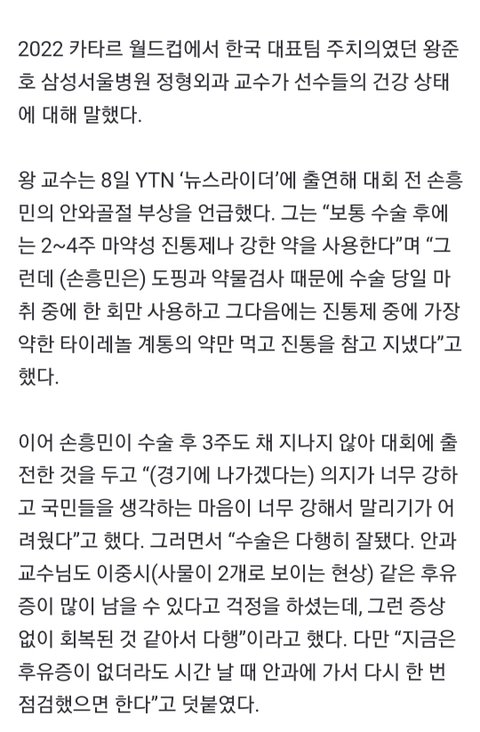 타이레놀수준의 진통제복용하고 3주도안되서 월드컵나온거래..