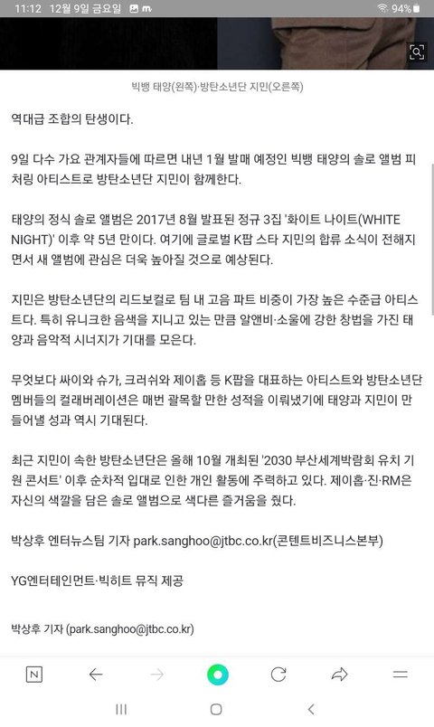 빅뱅 태양 내년 1월 컴백 방탄 지민이 피쳐링이고 역대급 콜라보