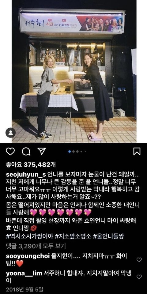서현이가 가장 힘들어 했던 시기에 언니들이 촬영장에 커피차를 보냈는데