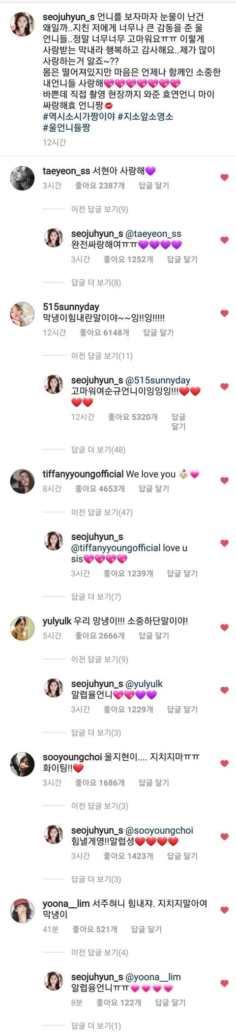 그리고 그 막냉이 인스타에 다 등장해 응원하던 언니들