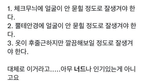 2. 뿔테 안경에 얼굴이 안 묻힐 정도로 잘생겨야 한다