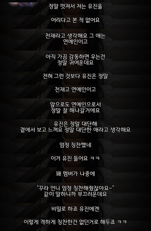 "유진은 정말 연예인이에요. 유진을 어리다고 생각해 본 적 없어요.