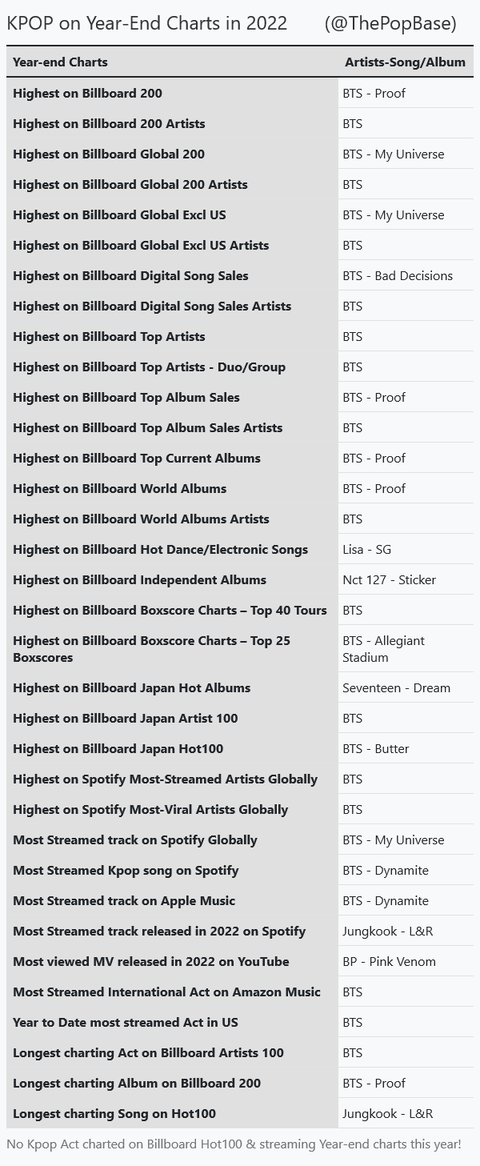 방탄만 정리한거야 아님 방탄이 저걸 다 1위했다는거야?