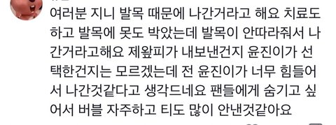덥즈 활도 발목 부상때문이었는데 그때는 건강상 이유라고 밝히지랂앗나? 건강상 이유라고 안하고 개인사정이라고 한이유가잇을텐데 뭐지