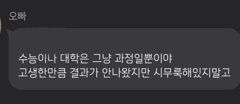 난 진짜 괜찮은데 오히려 가족들이 너무 슬퍼해서 그게 속상해서 울었어 오늘 다들 바빠서 집에 나 혼자 있었는데 걱정됐는지 계속 연락오더라 언니랑 전화하면서 울고 오빠랑 전화하면서 울고 엄마랑 전화하면서 울고 아빠한테 카톡 받고 울고ㅋㅋㅋㅋㅋ 아 나 진짜 괜찮은데!! 아닌가 계속 눈물 났어 난 망한 거 결과 받기 전부터 알고 있어서 정말 괜찮았는데 아닌가봐
