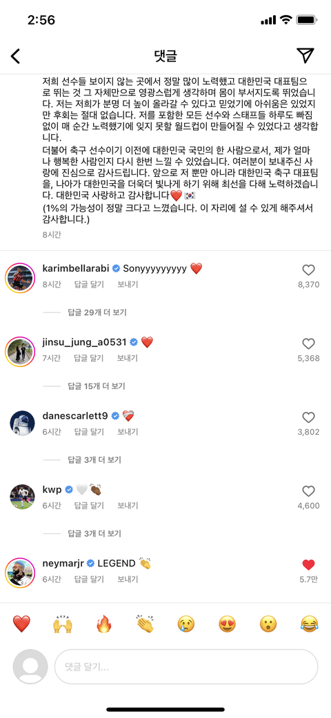 축알못인데 손흥민 지금 핫하길래 인스타 구경갔는데 네이마르가 댓썼던데…ㅎㄷㄷ둘이 친분이 있었음..?
