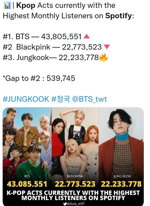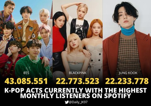 케이팝 현재 스포티 월별 청취자수 순위인데,