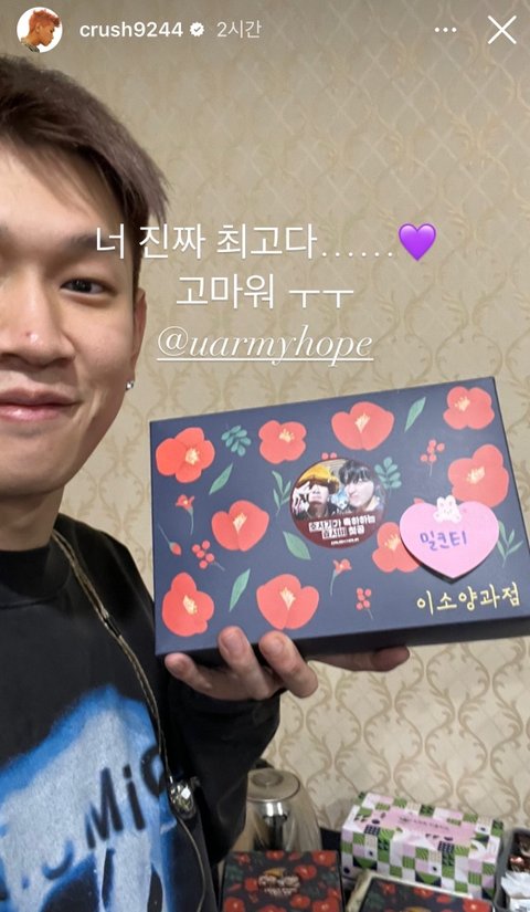 방탄 제이홉이 보낸 간식 인증한 크러쉬