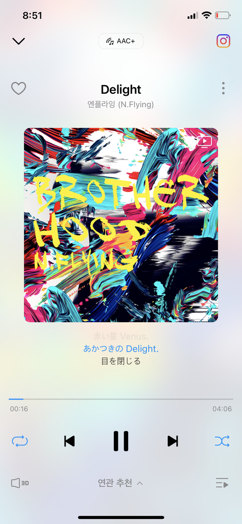 데이식스 한페될 세븐틴 지널찾 윤하 사건의지평선 이런 벅차오르는 노래에 환장하는 사람인데 진짜 나 믿고 들어봐.. 엔플라잉 노래 처음 두개는 일본앨범인데 저 앨범이 진짜 개미침 걍 애니 오프닝 뚝딱임