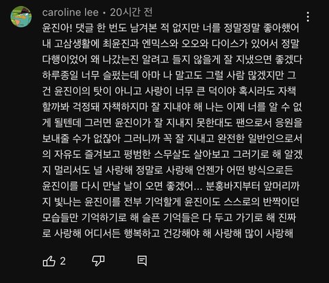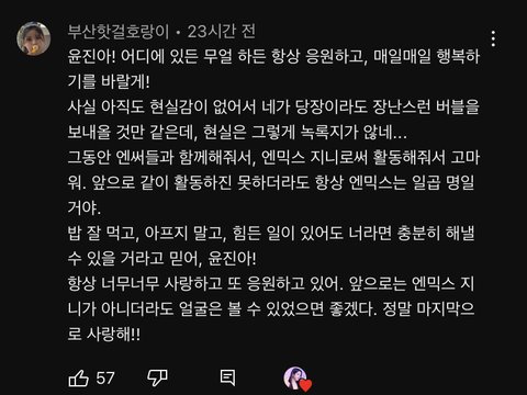 지니 보면서 든 생각인데 돌연 탈퇴하고 소식 하나도 없으면 보고 싶고 그럴 듯 일반인으로 살면 아예 소식을 들을 수 없는거니까..