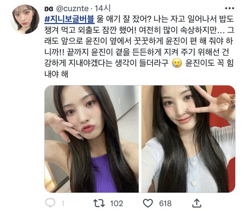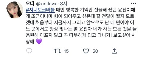 어느 지니 팬이 팬싸 때 준비한 말 없으면 사랑한다고 많이 말할걸이라는 트윗 보고 ㅈㄴ 울엇음 걍 조카 우울하다