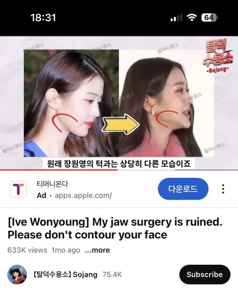 탈수가 이걸 턱성형 부작용이라고 올림. 물론 그렇게 보일수도있음 ⬇️