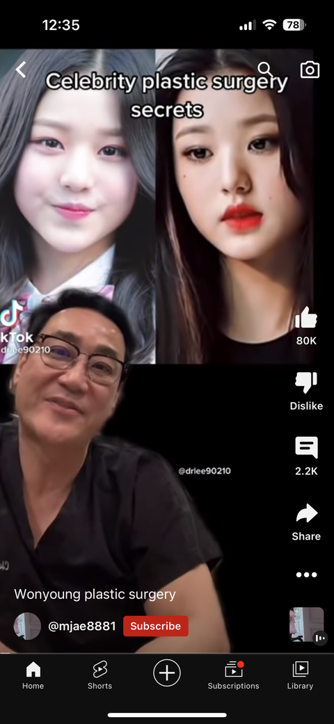 그리고 외국의사가 장원영 사진들고 성형을 어디어디했다 하는 영상보고 성형외과 의사가 한말이니까 그걸 증거랍시고 나불거리는사람들 있던데 대다수의 성형외가 의사들이 말하길, 실제로 자기가 만져보지 않는 이상 절대 어디어디 성형했는지 단정지을 수 없대. 그니까 그 외국 의사는 그냥 대충 달라진 부분갖고 어디어딜 성형했다 이렇게 예측한것에 불과해. 그리고 같은 날이어도 카메라, 조명에 따라 달라보이는데 어떻게 사진만으로 판단하겠어. 코는 솔직히 누가봐도 똑같아서 말 하지도않을게. 코성형 운운하는 애들은 진짜 개억지야