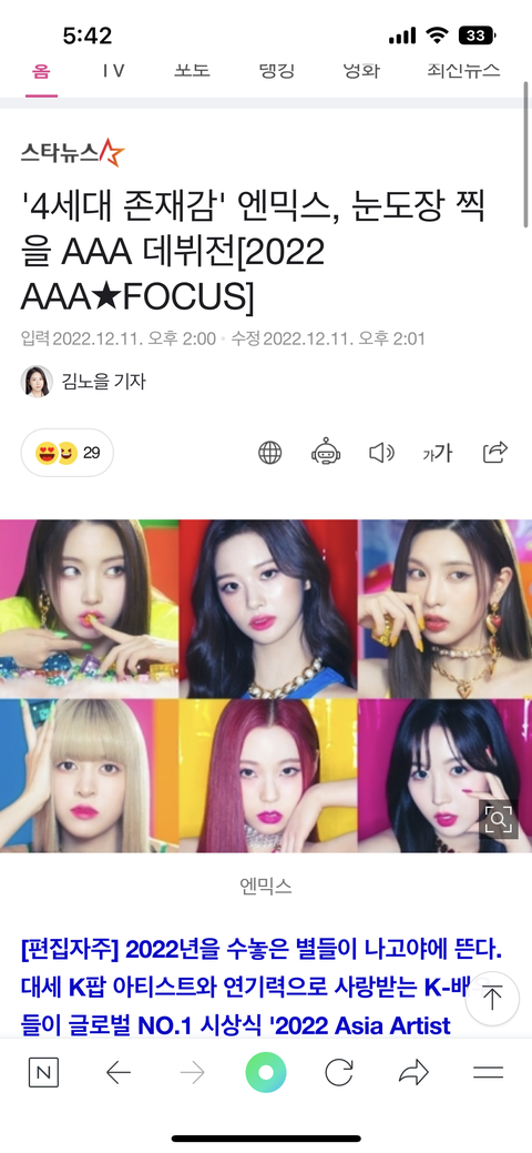 엔믹스 저렇게 편집한 사진으로 기사쓰는 게 너무 ㅜㅜ