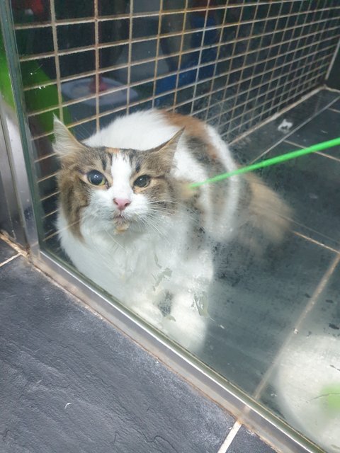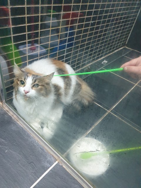 이제 담요로 냥이를 감싸안는건 어렵지 않아서 잘 감싸 안아 샤워부스로 들어갔어요. 그리고 냥이가 좋아하다는 음악들을 찾아 들려주면서 강아지풀 꼬치로 목욕 전 안정되게 베리와 1시간을 같이 있었습니다.