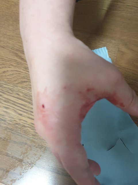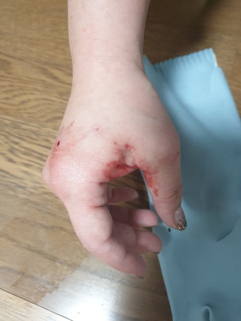 고무장갑은 찢어지고 바로 피가 나면서 붓기 시작하더라고요.