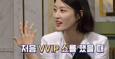 백화점 VIP 고객 앞에서 상품을 보여주는 모델 역할을 하는 장면이 있었는데..